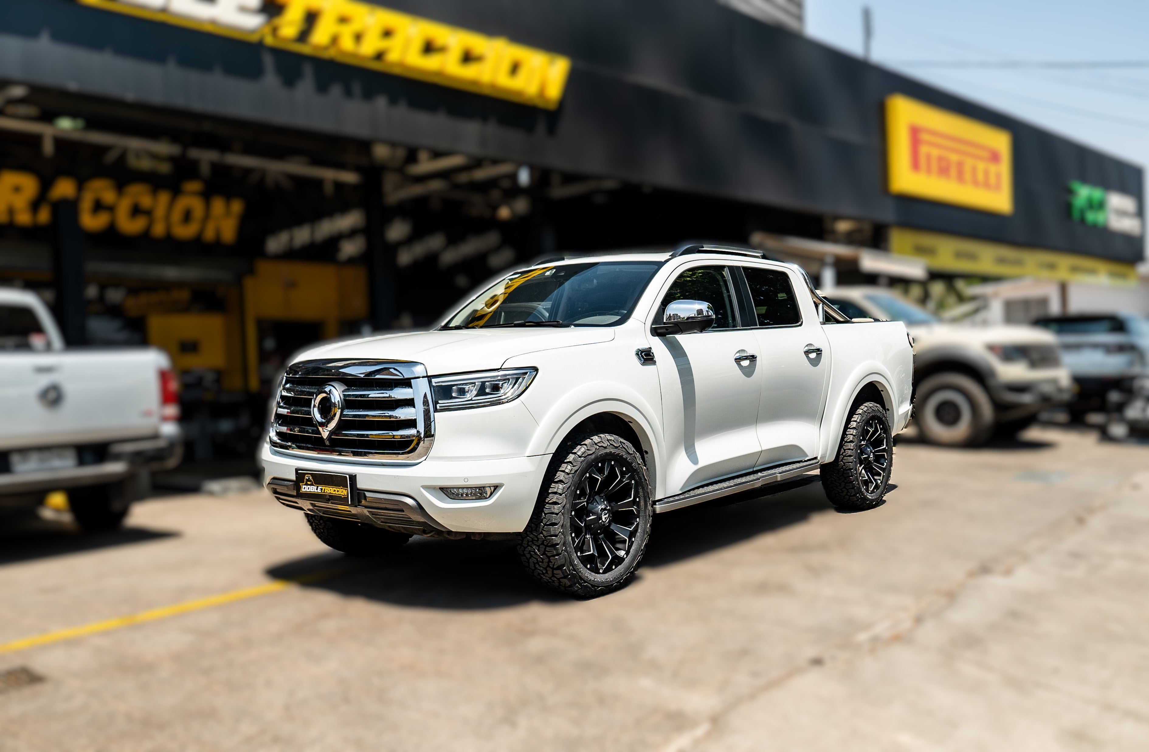 En DOBLETRACCIÓN encontrarás todo lo que tu Great Wall necesita para sobresalir en rendimiento, estilo y capacidad todoterreno. Cada camioneta de la marca puede potenciarse con neumáticos de alto agarre que se adaptan a cualquier superficie, kits de suspensión que entregan mayor estabilidad y confort, y llantas resistentes que refuerzan la presencia robusta y poderosa de tu 4x4. También disponemos de cubre pick-ups y soluciones pensadas para proteger la carga, mientras le añaden un toque de sofisticación off-road.