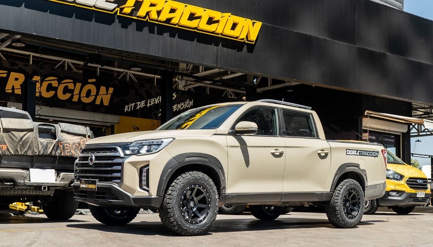 En DOBLETRACCION tenemos todo lo que tu Ssangyong Musso necesita para mejorar su rendimiento, estilo y capacidad todoterreno. Contamos con neumáticos de alto desempeño para cualquier terreno, kit de suspensión que optimiza estabilidad y confort, y llantas (apernadura 5x130) resistentes con diseños que realzan su presencia robusta y aventurera.