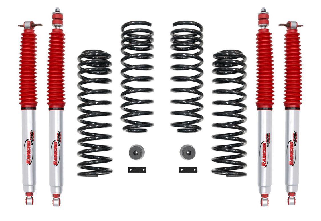 Los Rancho QuickLift levantan 2 pulgadas tanto la parte frontal como trasera de tu Wrangler, lo que permite la nivelación y colocación de neumáticos de mayor tamaño y brinda una postura más agresiva.