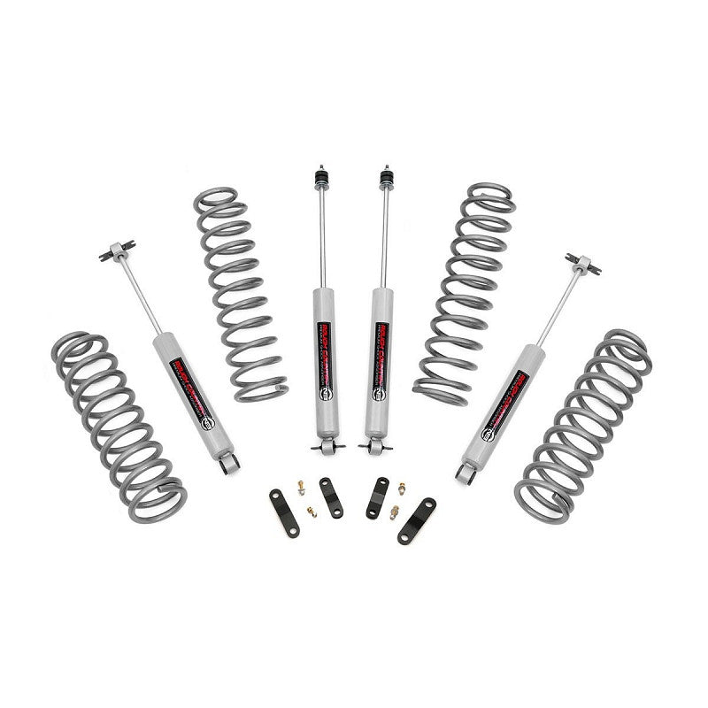 Este kit presenta un conjunto de espirales helicoidales delanteros y traseros levantados para ofrecer un perfil más alto y una fantástica capacidad off-road. Estos espirales helicoidales están ajustados de fábrica según amortiguación original para ofrecer una calidad de marcha similar a la de fábrica. Este kit también incluye un conjunto de Amortiguadores N3 de Rough Country. Estos amortiguadores de 10 etapas con válvulas variables y carga de nitrógeno a alta presión ofrecen una combinación fantástica de acción todoterreno y calidad de conducción en carretera suave. Con un pistón de 18 mm resistente y un cuerpo de amortiguación de 54 mm de enfriamiento más rápido, este amortiguador ofrece una Resistencia a la tracción de hasta 36 kN para una vida útil prolongada con una impresionante amortiguación. Presenta casquillos de goma natural y una llamativa pintura de plata metálica.