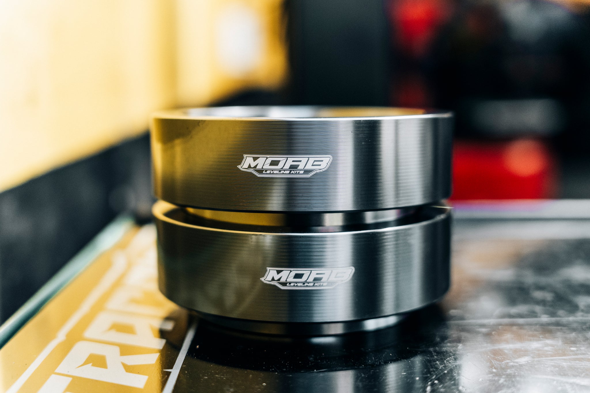 Los leveling kits MOAB están fabricados mediante CNC de alta precisión, garantizando un acabado resistente y duradero. Cada modelo es desarrollado y probado para ofrecer el levante óptimo y seguro según la configuración del vehículo, gracias a la experiencia acumulada en preparación de 4x4.