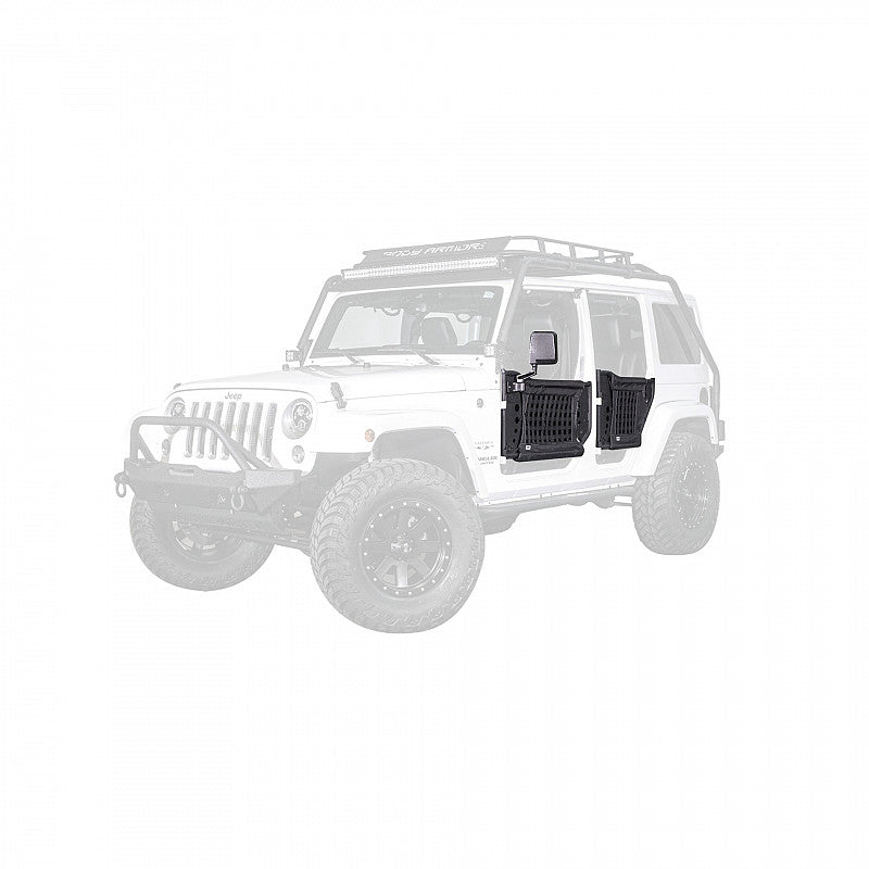 Las nuevas puertas Trail diseñadas para adaptarse a la parte trasera del JEEP. Con múltiples puntos de ajuste, las puertas se pueden ajustar para un ajuste preciso en el vehículo. Polvo recubierto en negro texturizado y presenta nuestras correas de nuevo diseño. La cinta ha sido mejorada a un material pesado. Los marcos están pintados en nuestra capa de polvo negro texturizado de doble proceso y están pretaladrados para nuestros espejos 5126. Las puertas se fabrican con orgullo en los Estados Unidos.Con orificios previamente perforados para cuerpo Armor espejos